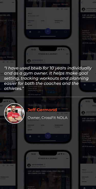 “I can easily access the workouts I follow and log my times and weights. The progression measurements keep you aware of your strengths/weaknesses. I highly recommend any athlete to BTWB to track all of their workouts.”